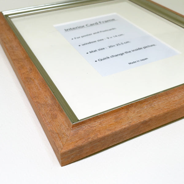 This is an inch frame with a postcard-sized window [approximately 100 x 150 mm]. It has an antique finish and can be used as interior decoration by putting postcards inside, or as a decoration for your room by putting memorable photos inside.
