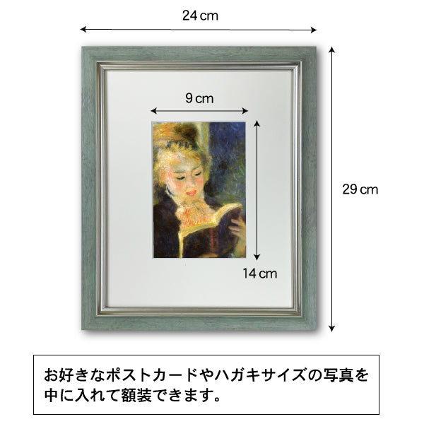 This is an inch frame with a postcard-sized window [approximately 100 x 150 mm]. It has an antique finish and can be used as interior decoration by putting postcards inside, or as a decoration for your room by putting memorable photos inside.