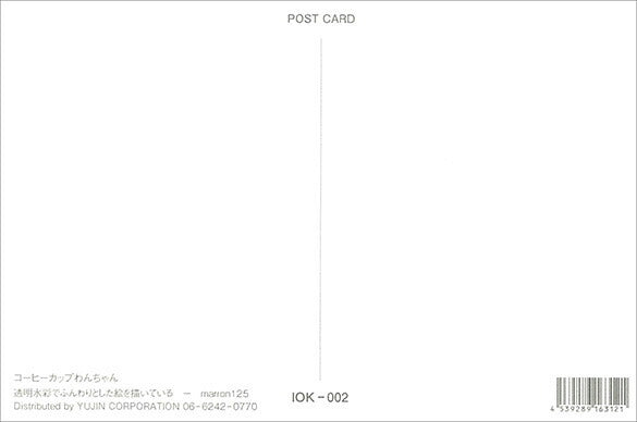 Postcard marron125 "Coffee cup dog" 100 x 150 mm Illustrator Watercolor Dog Animal Cute