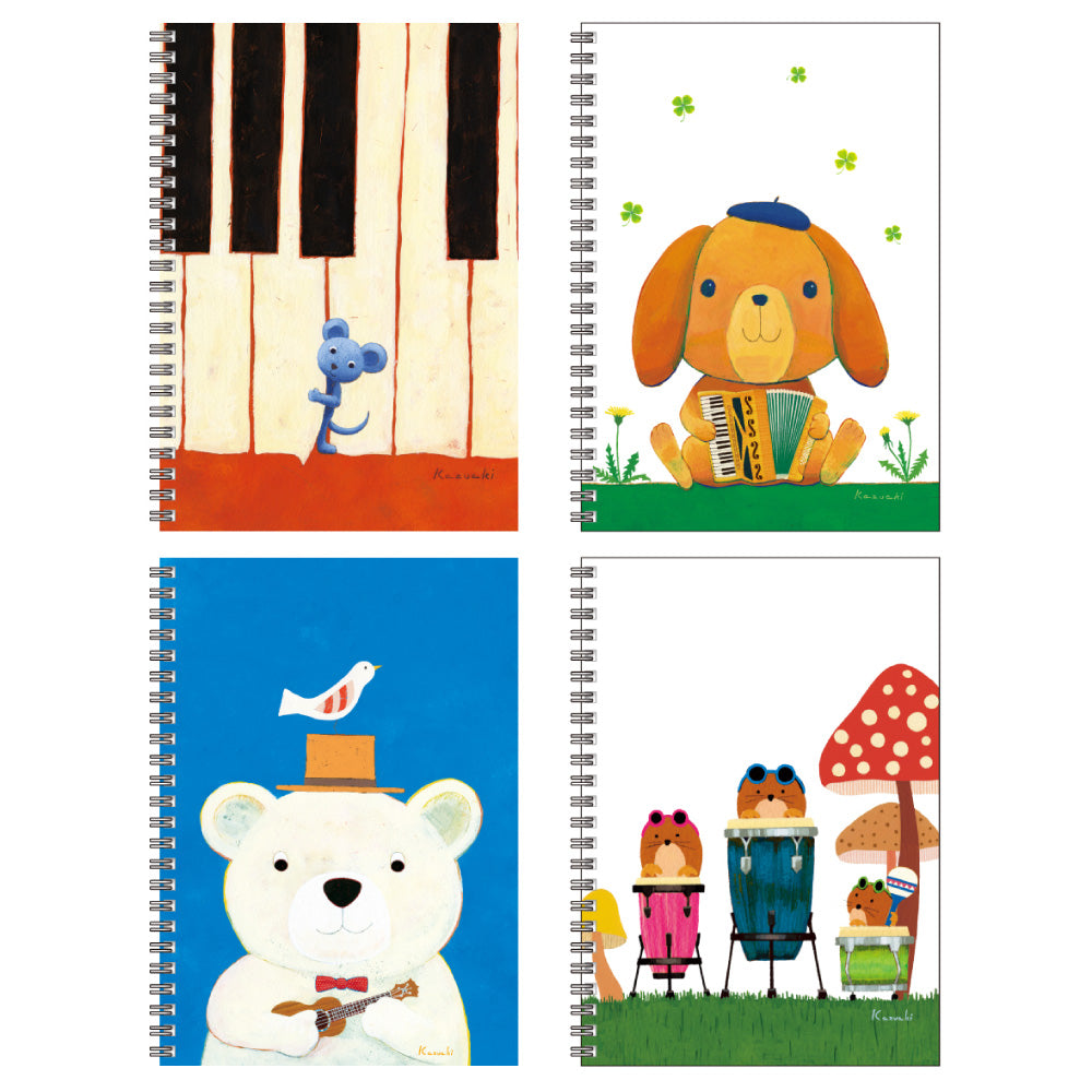 A5 Ring Notebook Set of 4 2 Kazuaki Yamada 60 Pages Picture Book Author Animal Musical Instruments Stationery