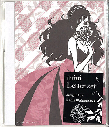 Mini letter set Wakamatsu Kaori "Woman and Peony White" Author Letter Stationery Envelope Girl Flower Plant