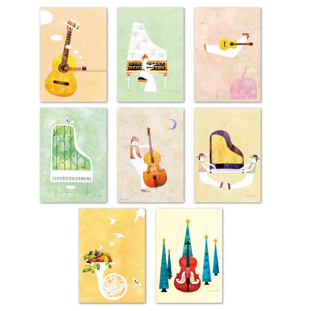 Set of 8 postcards 1 Kazuaki Yamada 105 x 150 mm Picture book author Musical instrument pattern Illustrator Postcard
