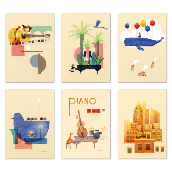 Set of 6 postcards 11 Kazuaki Yamada 105 x 150 mm Picture book author Animals Musical instrument pattern Illustrator Postcard