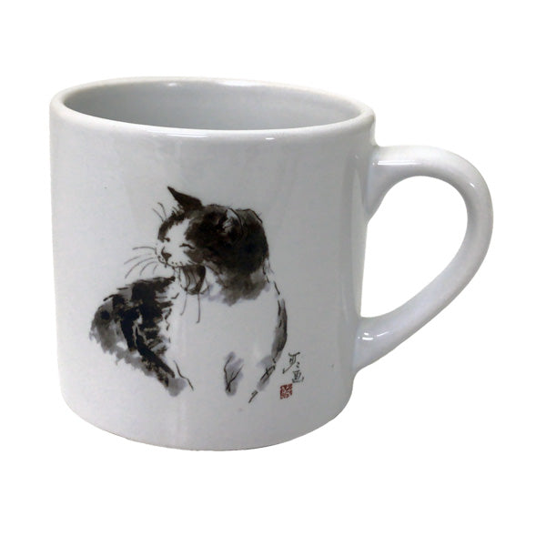 墨絵作家として活動されている中浜稔さんの猫の絵が2箇所にプリントされたマグカップです。