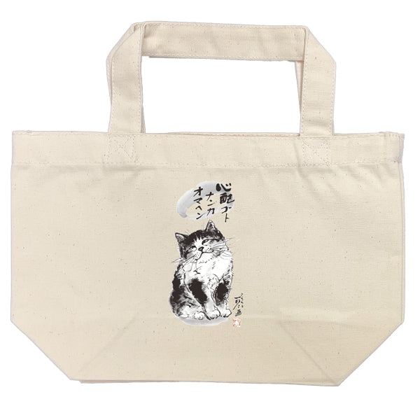 墨絵作家として活動中されている中浜稔さんの墨絵猫がプリントされたランチトートです。