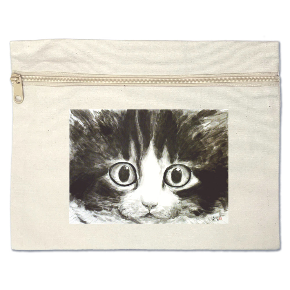 フラットポーチ大 中浜稔「目玉」コットン コスメケース 小物入れ 猫墨絵作家