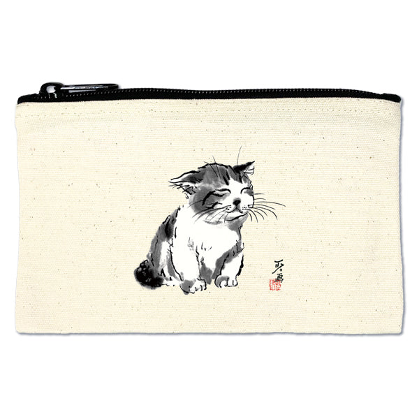 フラットポーチ小 中浜稔「寝起き」帆布 コスメケース 小物入れ 猫墨絵作家