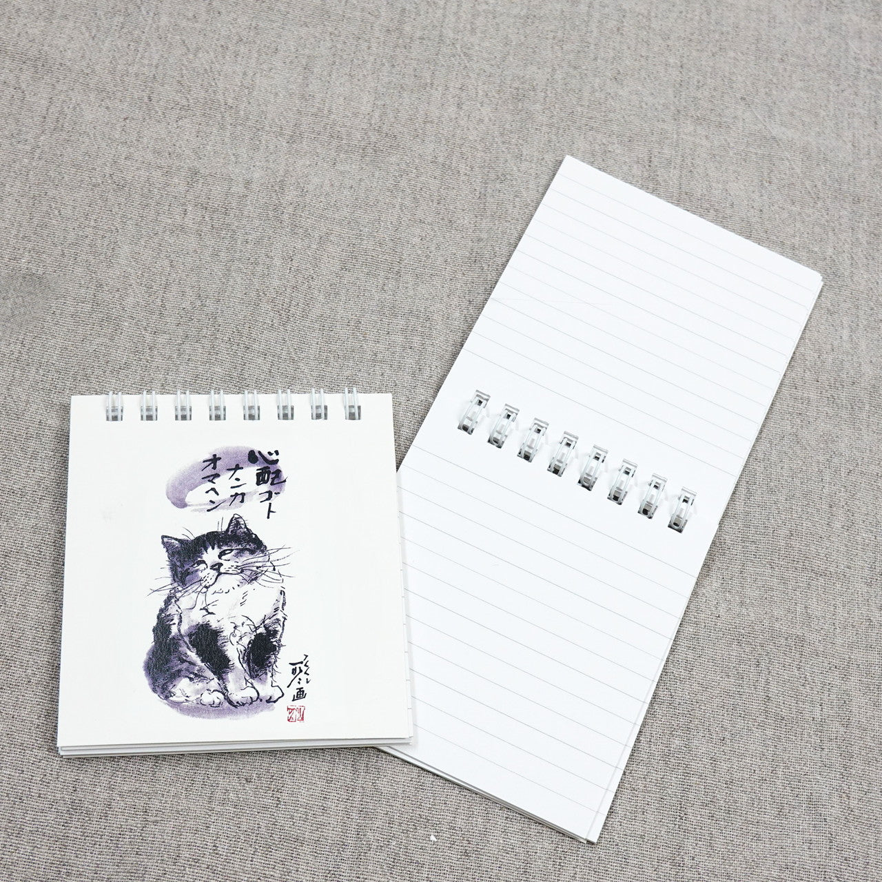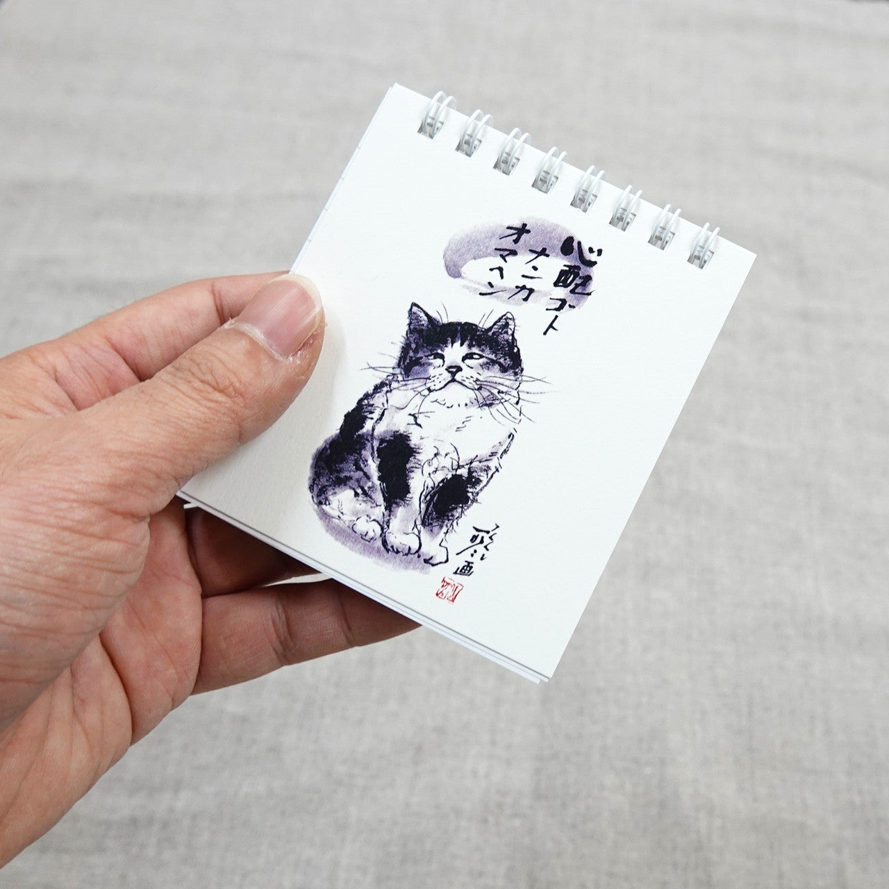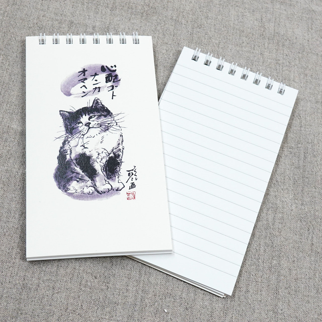 クイックメモ 中浜稔「心配ゴトナンカオマヘン」罫線 墨絵猫作家 小さい メモ帳 ノート