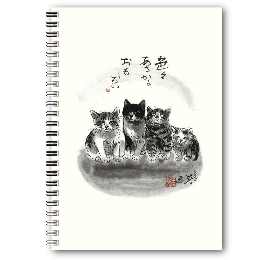 A5リングノート 中浜稔「色々あるからおもしろい」無地 猫墨絵作家 メモ帳 上質紙 文房具