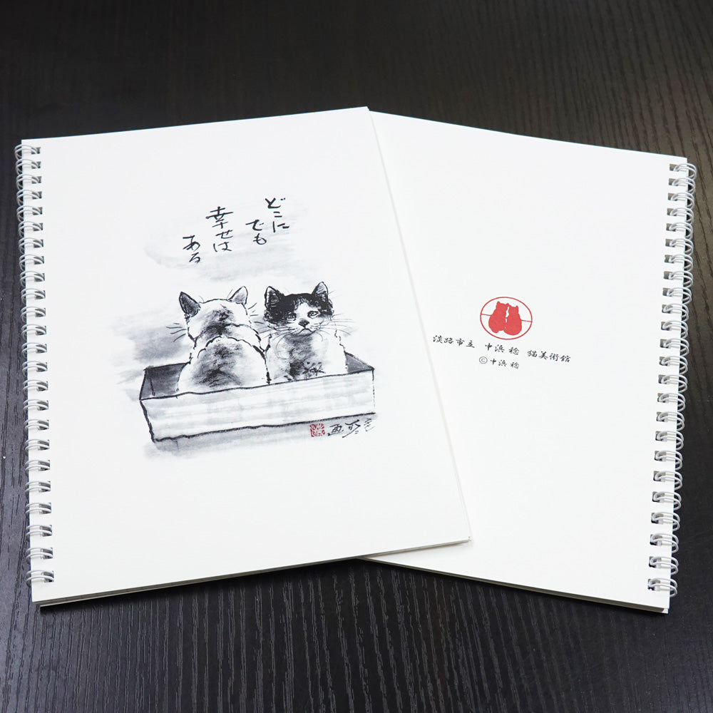 墨絵作家の中浜稔さんによる墨絵の猫が可愛いA5サイズのノートです。