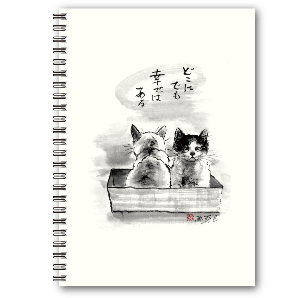 A5リングノート 中浜稔「どこにでも幸せはある」方眼 猫墨絵作家 メモ帳 上質紙 文房具