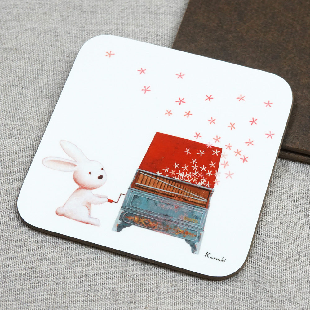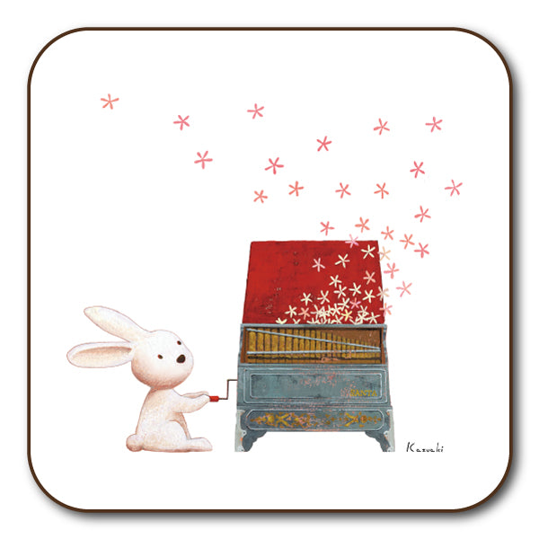 コースター 山田和明「うさぎオルガン」90×90mm 絵本作家 動物 楽器 キッチン用品