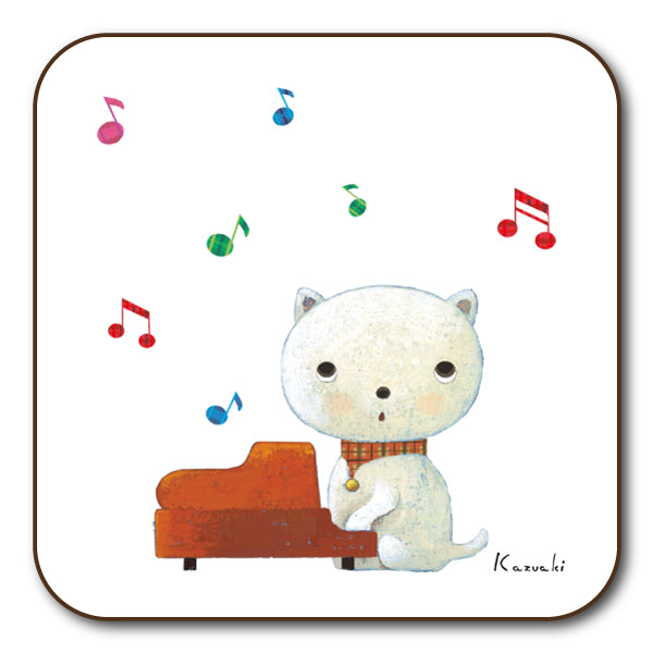 コースター 山田和明「ねこピアノ」90×90mm 絵本作家 動物 楽器 キッチン用品