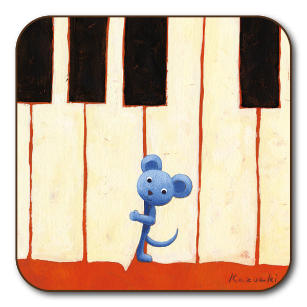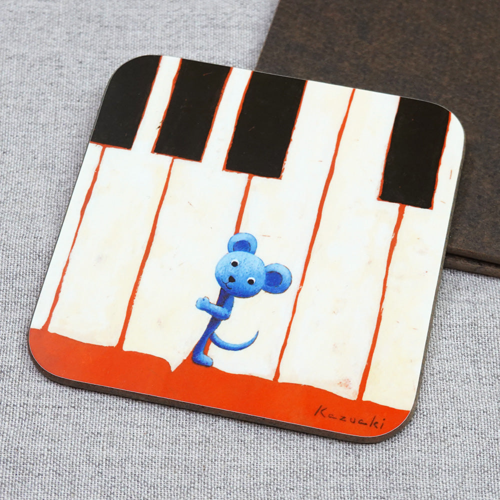 コースター 山田和明「しあわせのリフレイン ねずみ」90×90mm 絵本作家 動物 楽器 キッチン用品
