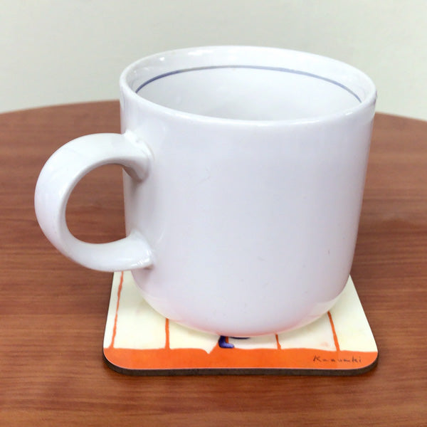 絵本作家の山田和明さんのイラストがプリントされたコースターです。
