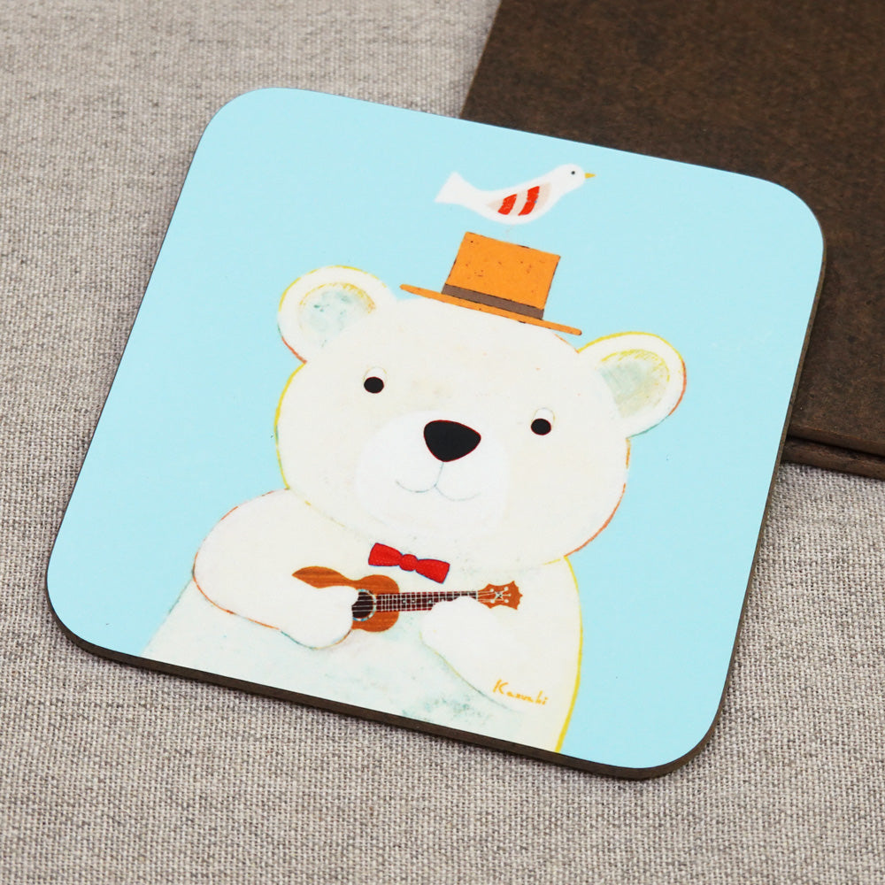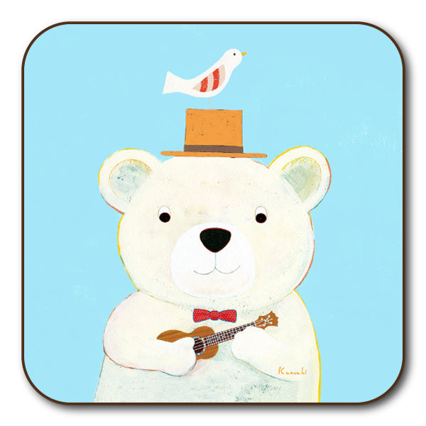 コースター 山田和明「ぼくのウクレレ しろくま」90×90mm 絵本作家 動物 楽器 キッチン用品