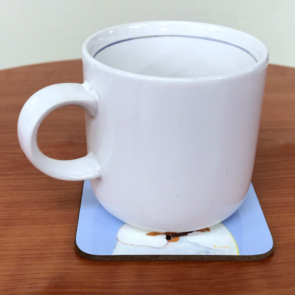 絵本作家の山田和明さんのイラストがプリントされたコースターです。