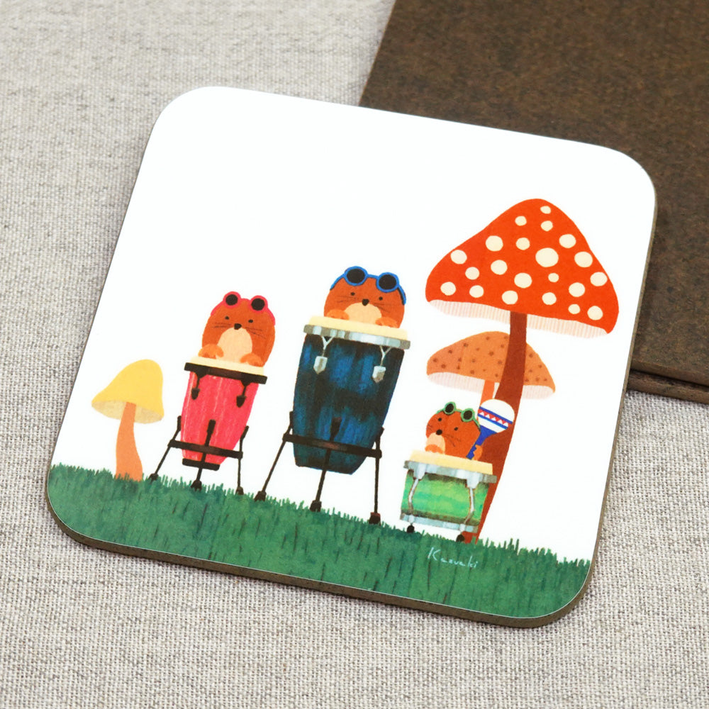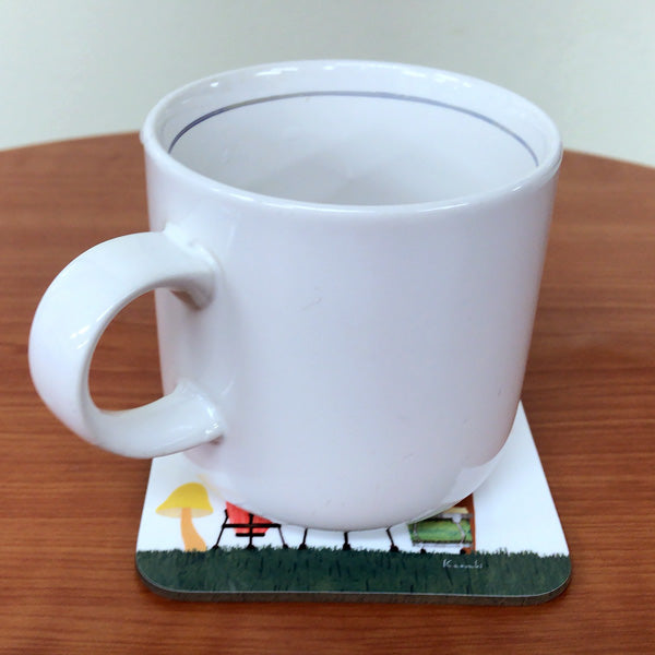 絵本作家の山田和明さんのイラストがプリントされたコースターです。