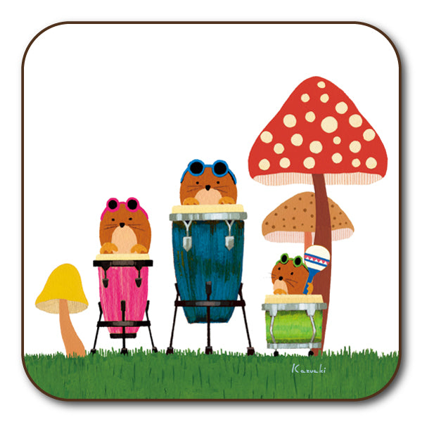コースター 山田和明「アンとプチとパケ」90×90mm 絵本作家 動物 楽器 キッチン用品