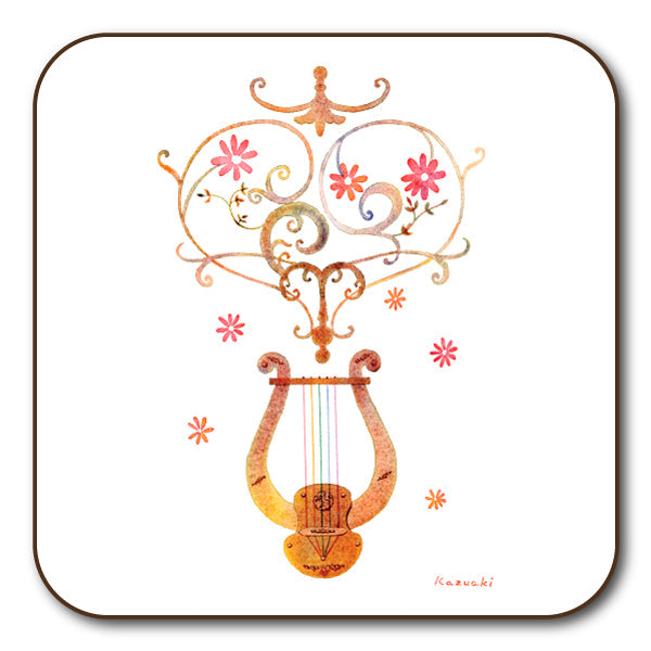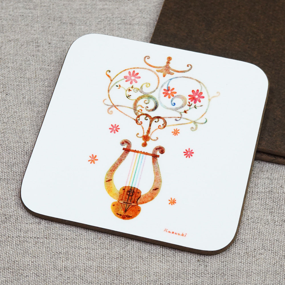 コースター 山田和明「ハープの調べ」90×90mm」絵本作家 水彩画 音楽 楽器 キッチン用品