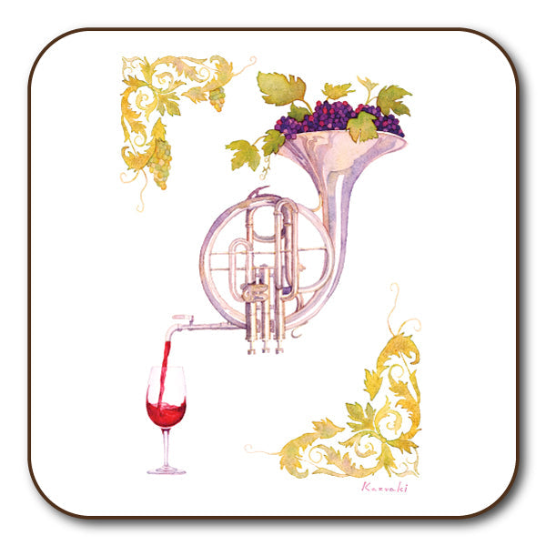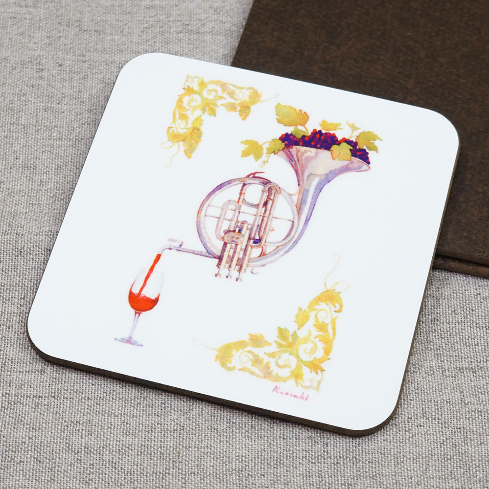 コースター 山田和明「ワインのための協奏曲」90×90mm」絵本作家 水彩画 音楽 ホルン 楽器 キッチン用品