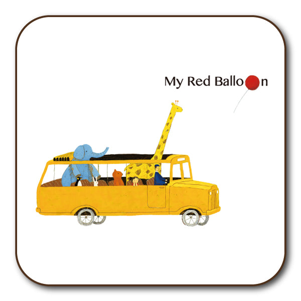 コースター 山田和明「マイレッドバルーン」90×90mm イラスト キッチン用品 風船 バス」絵本作家 動物
