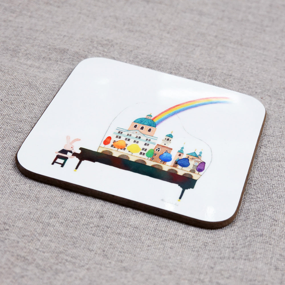 絵本作家の山田和明さんのイラストがプリントされたコースターです。