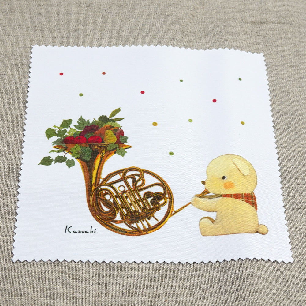 クリーニングクロス 山田和明「くまホルン」150×150mm 絵本作家 メガネ拭き 動物 楽器