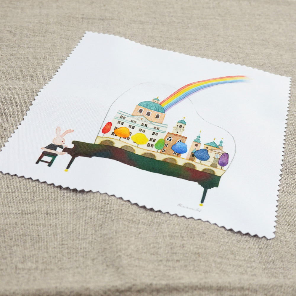 絵本作家の山田和明さんのイラストがプリントされたクリーニングクロスです。
