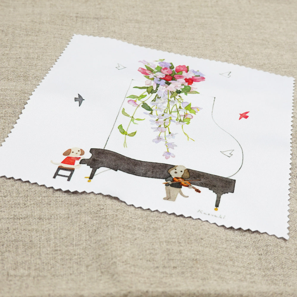 クリーニングクロス 山田和明「ふりそそぐ幸せのとき」150×150mm 絵本作家 動物 楽器