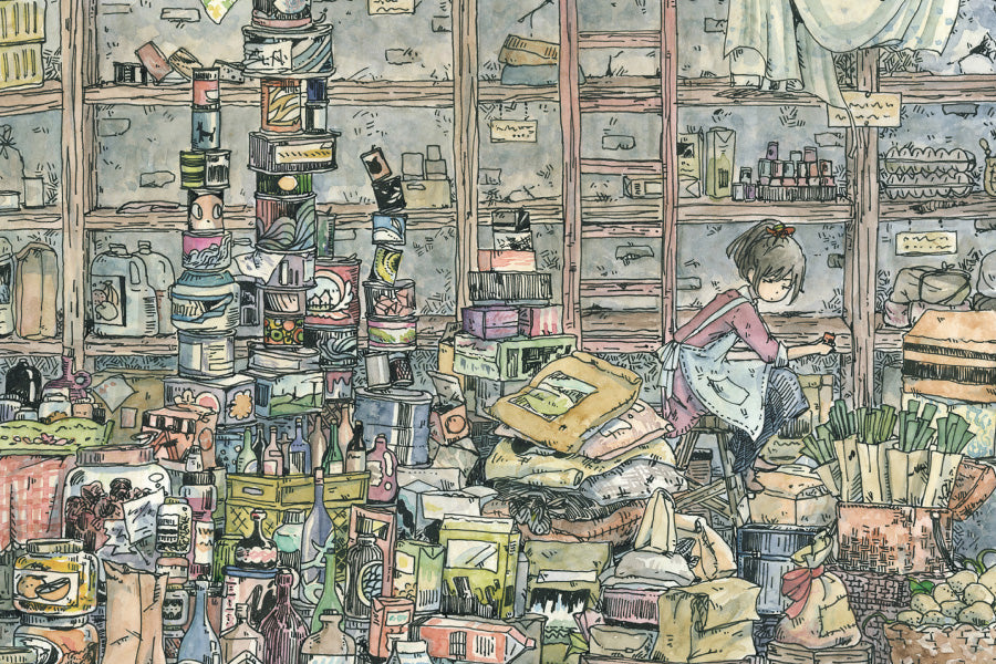 ポストカード かわいみな「倉庫の片づけ」100×150mm イラストレーター 郵便はがき