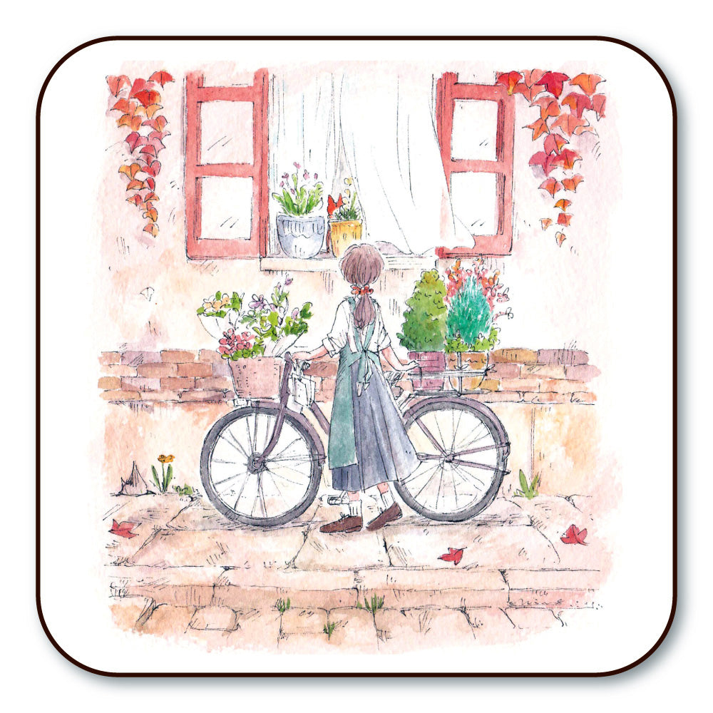 コースター かわいみな「お花の配達」90×90mm 正方形 キッチン用品