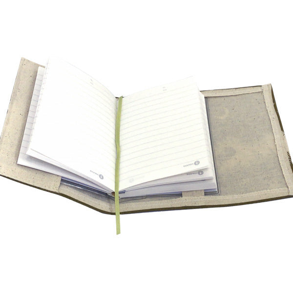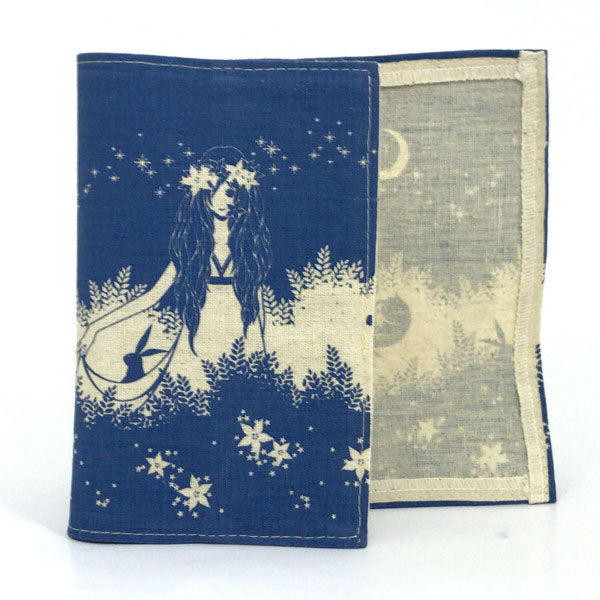 日本で活躍するイラストレーターのワカマツカオリさんのブックカバーです。文庫サイズが収納できて、柔らかい素材の帆布を使用しています。