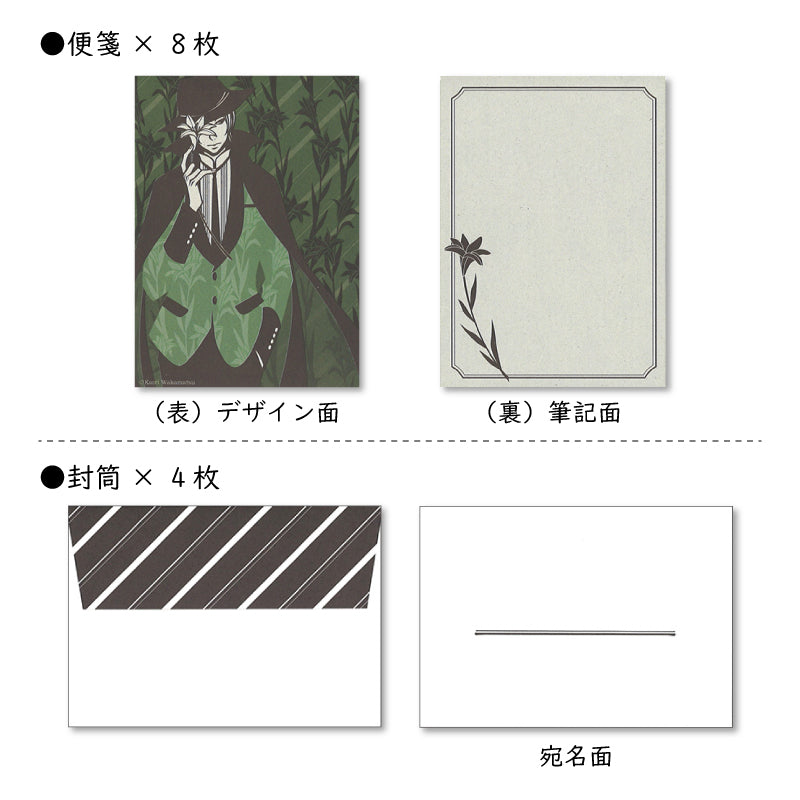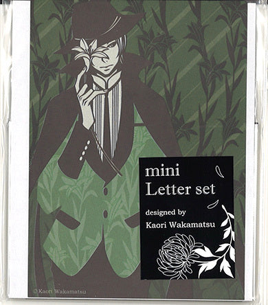 ミニレターセット ワカマツカオリ「男性とユリ ブラック」作家 手紙 便箋 封筒 男の子 ボーイ スーツ 花 植物