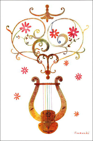 ポストカード 山田和明「ハープの調べ」105×150mm 絵本作家イラストレーター 郵便はがき