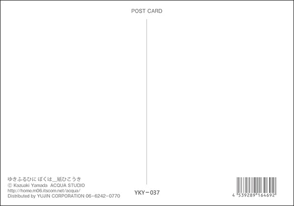 ポストカード 山田和明「ゆきふるひにぼくは_紙ひこうき」105×150mm 絵本作家イラストレーター 郵便はがき