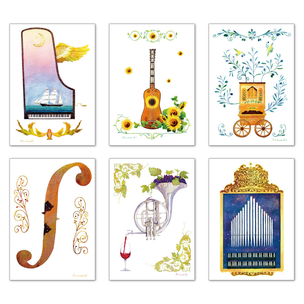 ポストカード6枚セット4 山田和明 105×150mm 絵本作家 楽器柄 イラストレーター 郵便はがき
