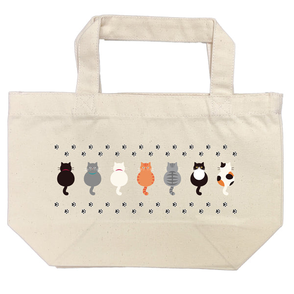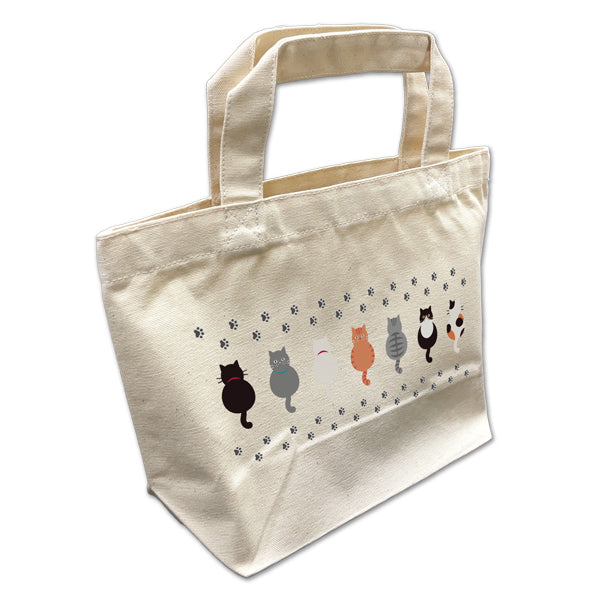 ランチトート「7匹の猫&あしあと」帆布バッグ 収納 動物柄 オリジナル